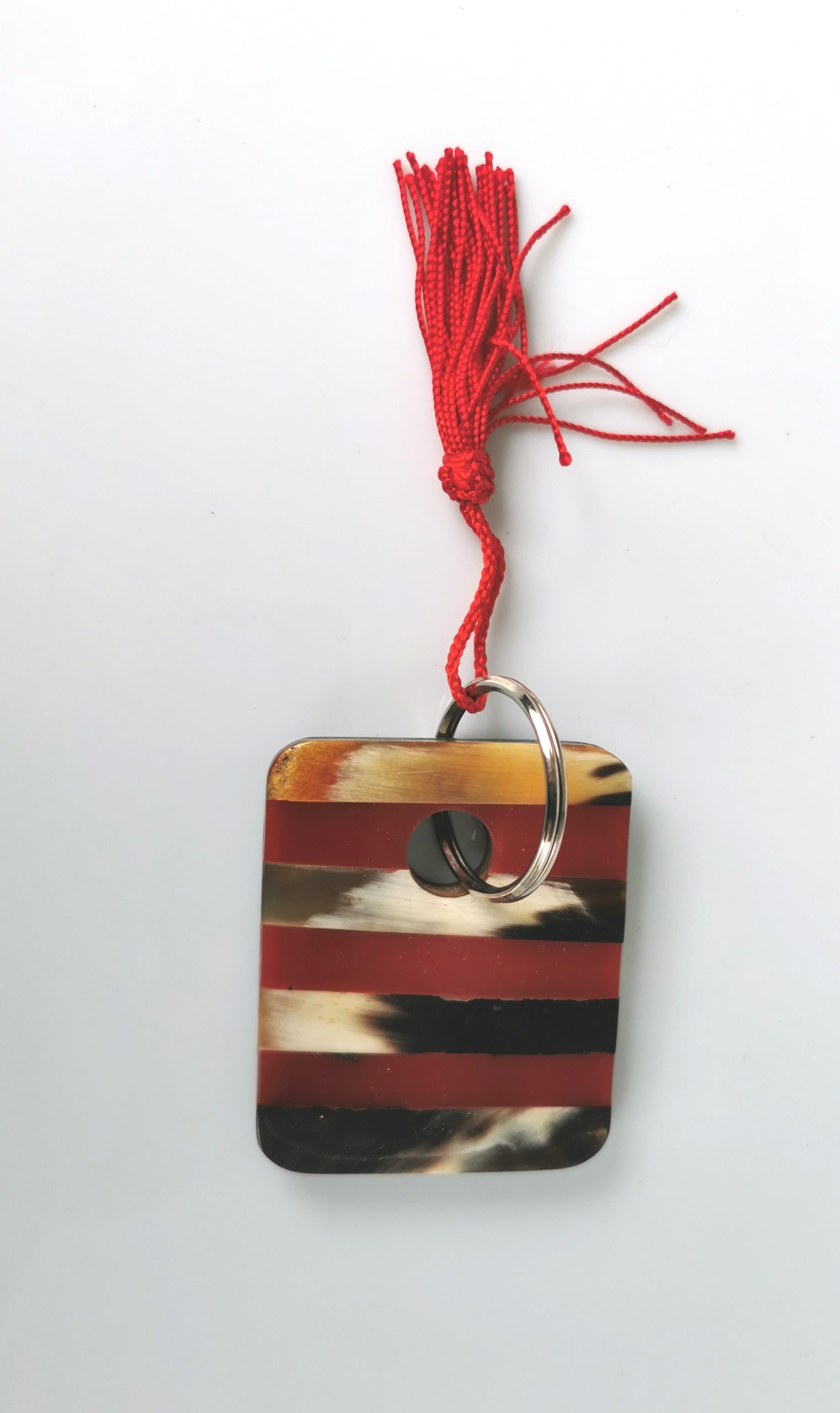 Sie suchen einen ganz besonderen Schlüsselanhänger? Unsere Horn Schlüssel Anhänger sind attraktive Schmuckstücke, die marokkanische Künstler in liebevoller Handarbeit herstellen. Die eingearbeiteten Hornelemente weisen ihre eigenen Maserungen und Zeichnungen auf, ebenso wie die Natur sie schuf. Daher ist jeder der Schlüsselanhänger ein schönes Designerstück und ein Unikat.